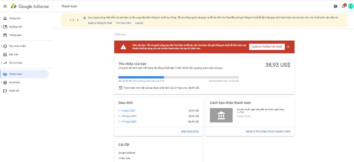 Gần đây mình cũng như các bạn khi lên youtube nhận được 1 thông báo đỏ khè, nội dung đại ý như sau , chủ kênh youtube cần khai báo thuế trước 31/5 nếu không youtube sẽ áp mức thuế cao nhất là 24% đối với toàn bộ lượt xem trên phạm vi toàn thế giới.