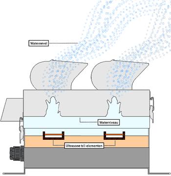 Phương pháp này là sử dụng bộ phận tạo dao động để dưới mặt nước. nó sẽ tạo dao động cực mạnh làm nước dao động theo. và ở tần số cao nước bề mặt bị dao động và bung lên thành sương.