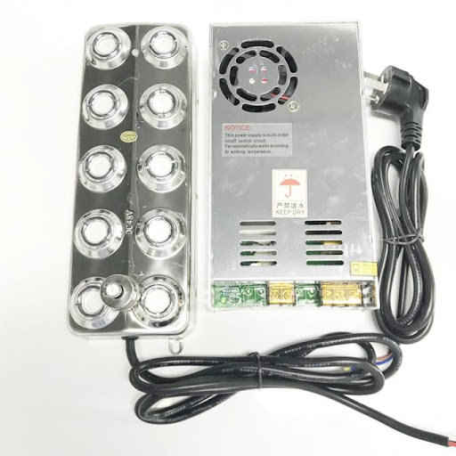 Đây chính là bộ phun sương siêu âm thông dụng mà các bạn hay bắt gặp trong cuộc sống . Tuy nhiên nếu phun bằng em bé tẹo này thì không biết bao giờ mới xong được. Do đó mà các bạn sẽ sử dụng bộ phun sương công nghiệp vỉ loại 10 mắt công suất cao . loại này hay dùng để tạo ẩm cho nhà yến cho giống điều kiện tự nhiên, để tổ yến không bị khô quá mà rớt xuống đất