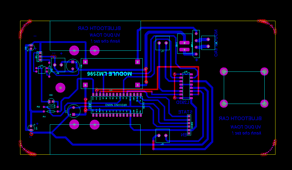 Hình 3: mạch in xe điều khiển từ xa bluetooth (mạch lớp dưới và các jump nối phía trên)