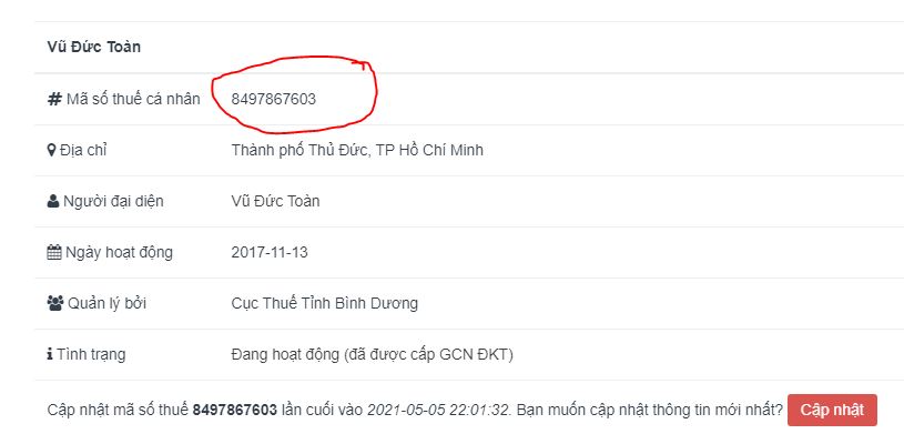 Sau vài đường gõ phím thì mã số thuế của mình như này nhé !