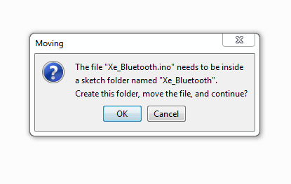 Một điều lưu ý là khi các bạn mở file chương trình "xe bluetooth" thì chương trình arduino sẽ hiện lên bảng thông báo như này: