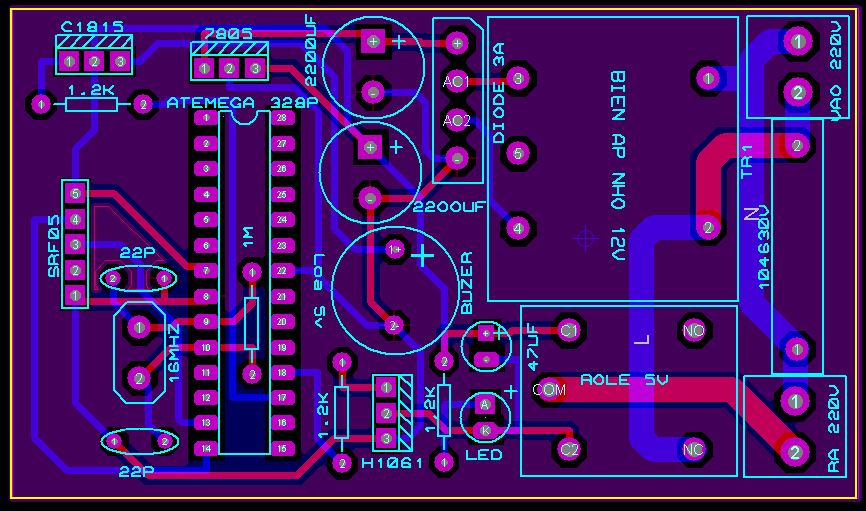 File mạch in tải tại đây các bạn gửi tới công ty làm mạch in nhé họ gia công ra cho vì đây là mạch in 2 lớp nên không ủi thủ công được :